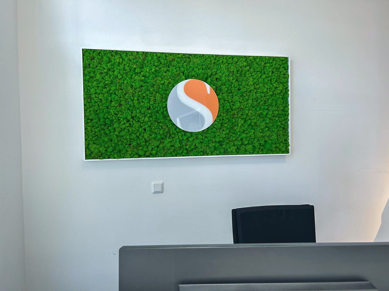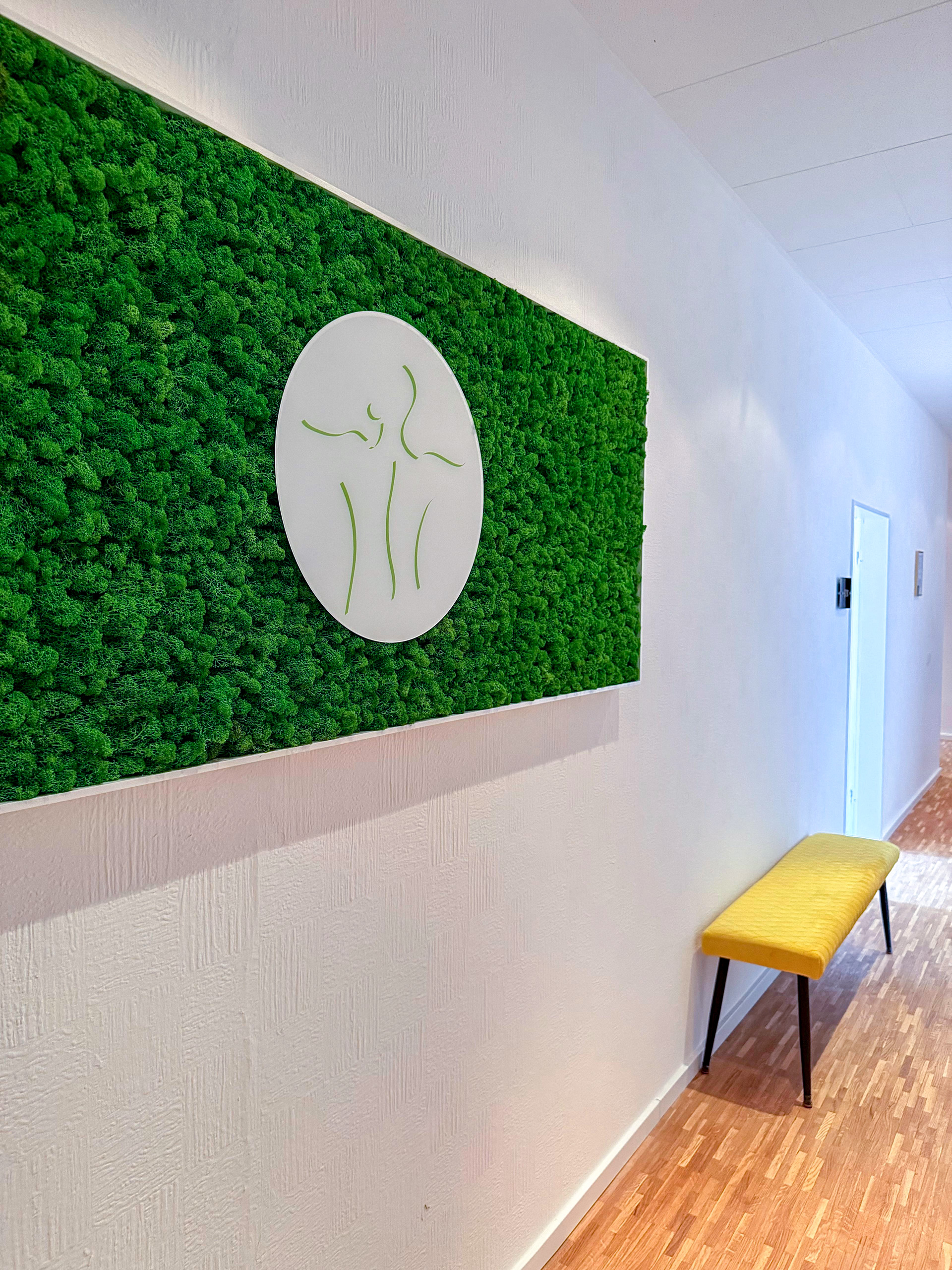 Maßgefertigte Mooskunst mit akustischer Wirkung und wartungsfreiem System.