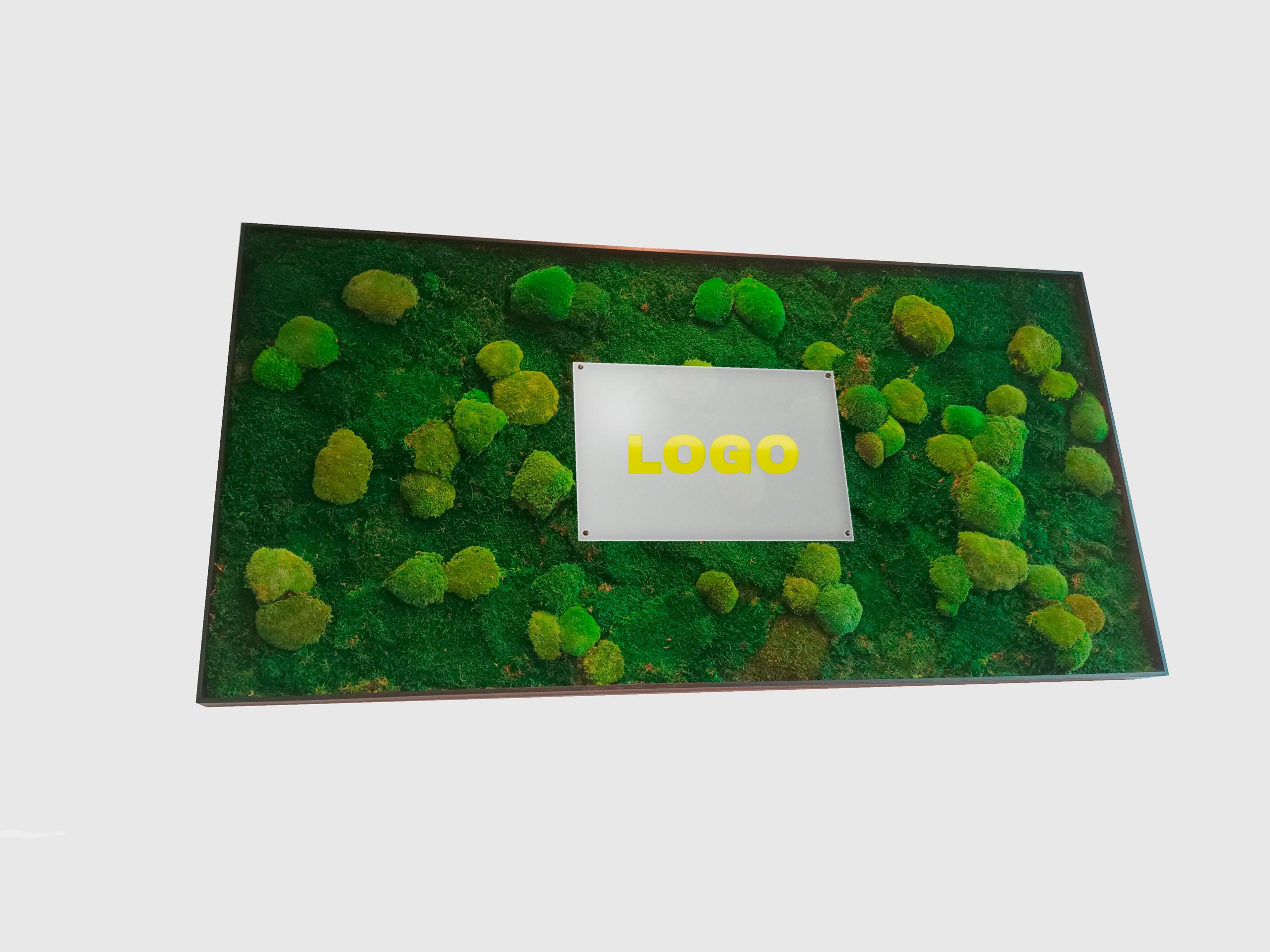 Moosinstallationen mit integrierten 3D-Logos verbinden Markenidentität mit natürlicher Gestaltung.